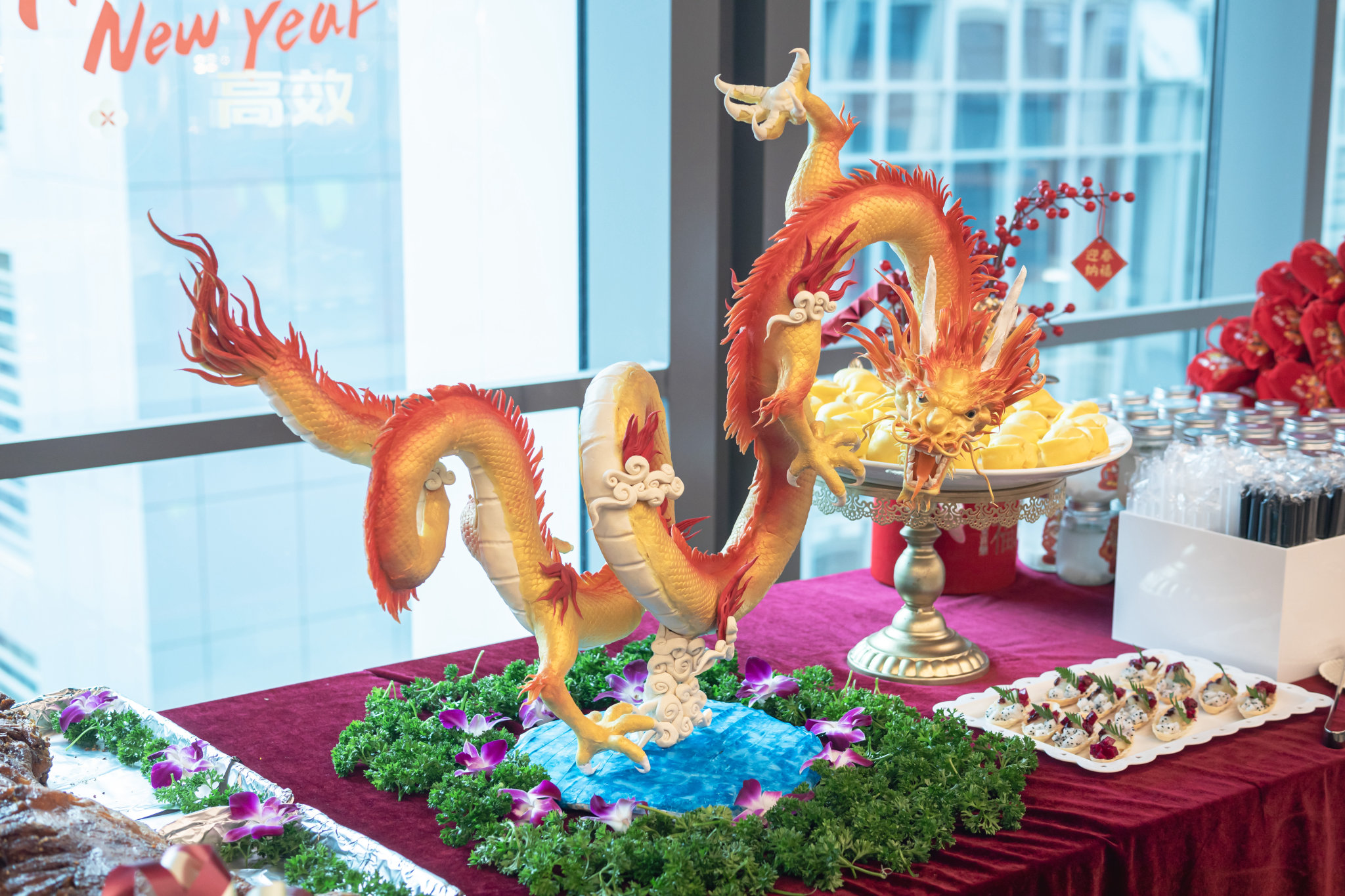 (某金融企业HB火博餐厅内福龙醒狮迎开年)