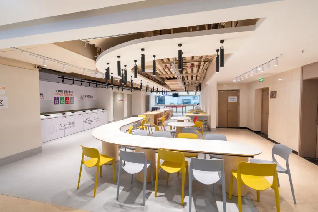 多类型用餐区域协调组合,结合流线式区域设计,在开阔空间视野中打造“轻隔断”,配色明亮轻快,让每位用餐食客都能拥有独属自己与好友的用餐时光。